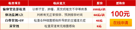 凭此专项助孕基金可获:(1)价值1000元的不孕治疗费援助;(2)价值2000元的不孕微创手术费援助。详情咨询:0371—67353333。