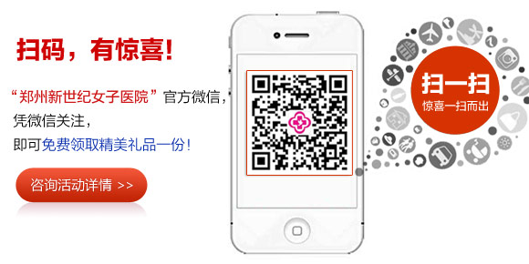 扫描“郑州新世纪女子医院”官方微信,凭微信关注,即可免费领取精美礼品一份!