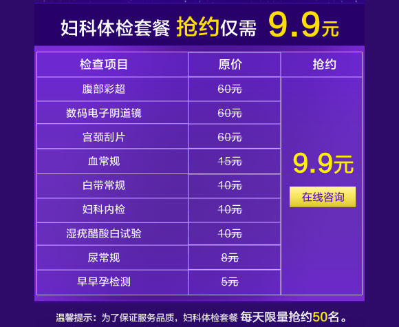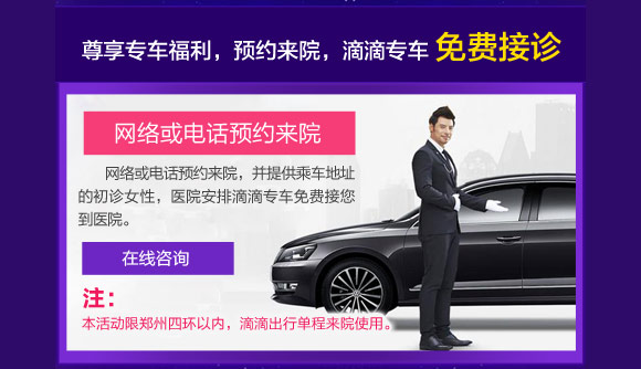 健康过中秋,郑州新世纪女子医院浓情推出“中秋团圆惠 滴滴免费行”关爱女性健康活动:价值238元的妇科体检套餐仅需9.9元,可尔依无痛人流限价380元,妇科整形限价600-900元,石女再造手术费半价,预约尊享滴滴专车免费接诊,为河南女性健康保驾护航。