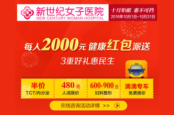 [导读]: 前言:金秋十月,郑州新世纪女子医院浓情推出 十月钜献 惠不可挡 公益助医活动, 2000元红包大派送 ,3重好礼惠民生 : 妇科检查、治疗、手术红包免费派送,T CT/内分泌检查半价, ...