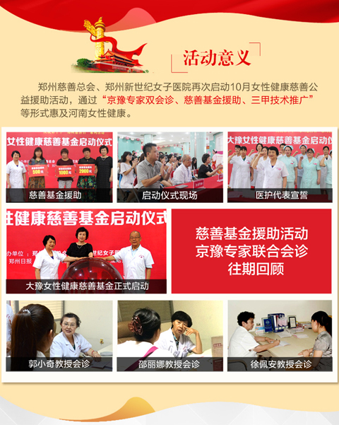 [导读]: 前言: 2017年10月1日至10月31日,郑州新世纪女子医院推出京豫专家双会诊 三甲技术大推广活动,活动期间邀请到京豫名医耿白霞教授、郭小奇教授、许心杰教授、闫丽华主任等知名专家 ...