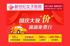 十一黄金周,郑州新世纪女子医院浓情推出 国庆大放价滴滴免费行 关爱女性健康活动: 价值238元的妇科体检套餐仅需10元,彩超、阴道镜检查1折抢约,阴道护理限价50元, 可尔依保宫...[详细]